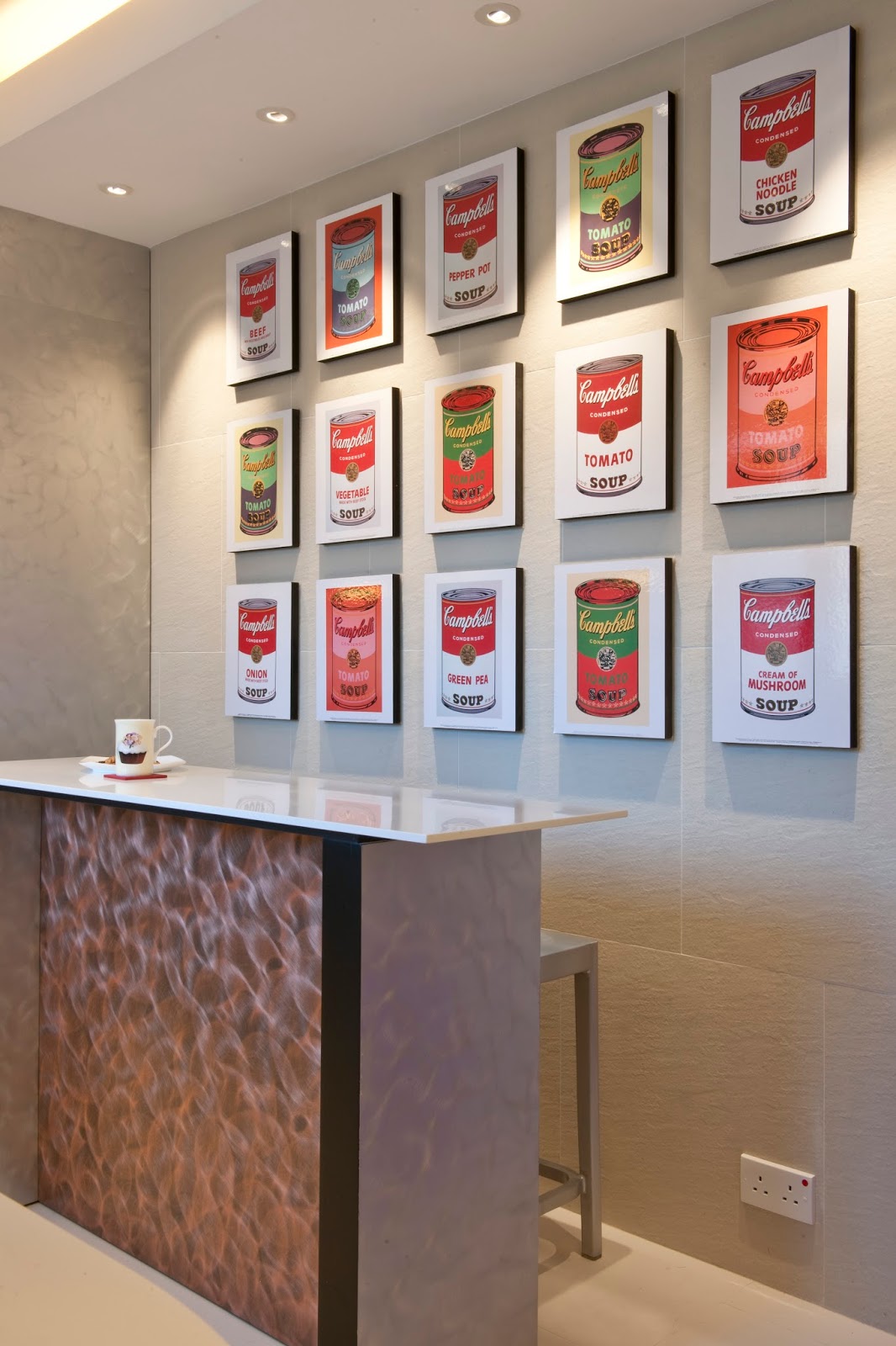 If your art pieces are three-dimensional like figurines and ornaments, consider having a display shelf to showcase them. Here, a display shelf is designed to conceal a storage unit—perfect for space-starved Hong Kong apartments! With a light at the back of the display shelf, your experience of viewing your art pieces is enhanced. Here’s a tip, if you have a diverse range of art works, arrange them according to different themes. For example, here, the architectural pieces are put together here on the second compartment from the top and works by famous Taiwanese sculptor Ju Ming are grouped together in the middle compartment.